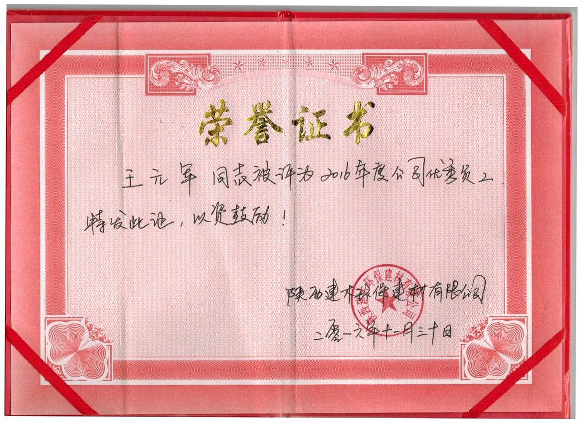 2016年11月30日,陜西建木環(huán)保建材有限公司召開2016年度年終總結(jié)大會,公司領(lǐng)導(dǎo)深刻并詳細的總結(jié)了2016年度公司的生產(chǎn)及經(jīng)營狀況,并分析了未來幾年建筑建材市場需求量等等;公司員工踴躍發(fā)言,各抒己見...... 會議中,公司總經(jīng)理為2016年度優(yōu)秀員工頒發(fā)榮譽證書,以下是圖片資料: